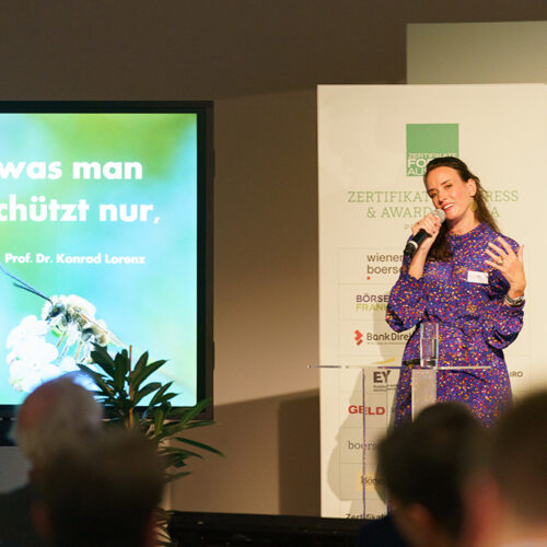 Zum Abschluss präsentierte die Filmemachering Vanessa Weber von Schmoller, ihren Film „EIN HIMMEL VOLLER BIENEN“ und informierte, „WIE UNTERNEHMEN SICH NACHHALTIG ENG AGIEREN UND BIODIVERSITÄT FÖRDERN KÖNNEN.“