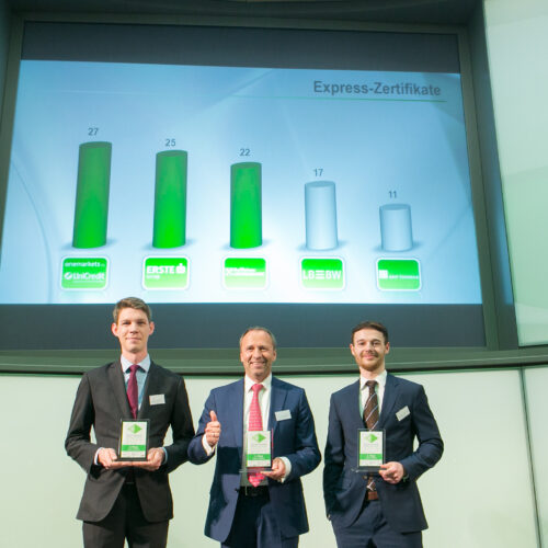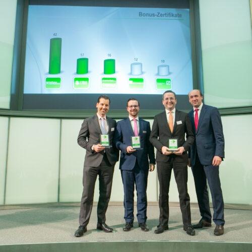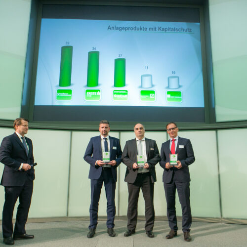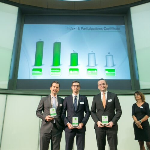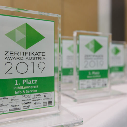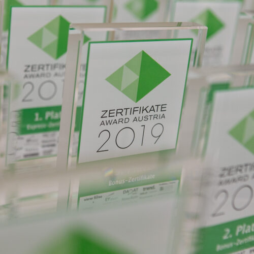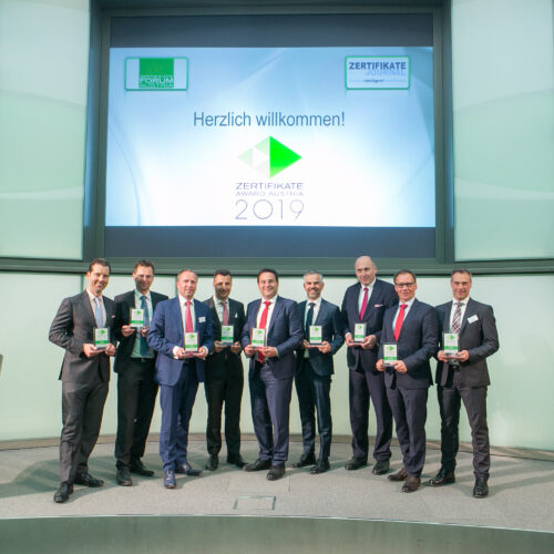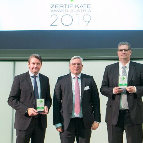 Bereits zum dreizehnten Mal veranstalteten gestern Abend das Zertifikate Forum Austria und das ZertifikateJournal den Zertifikate Award Austria, bei dem die Emittenten für die besten und innovativsten Produkte ausgezeichnet wurden. Eine unabhängige 22-köpfige Fachjury aus Asset Managern, Retail-Bankern, Online-Brokern und Finanzjournalisten beurteilte die Qualität der Serviceleistungen und Anlagekonzepte der Emittenten, die auf dem österreichischen Markt tätig sind. Sie kürte die besten Zertifikate-Häuser und Produkte in neun Einzelkategorien sowie den Gesamtsieger. Insgesamt bewarben sich 13 Emittenten um die Awards.